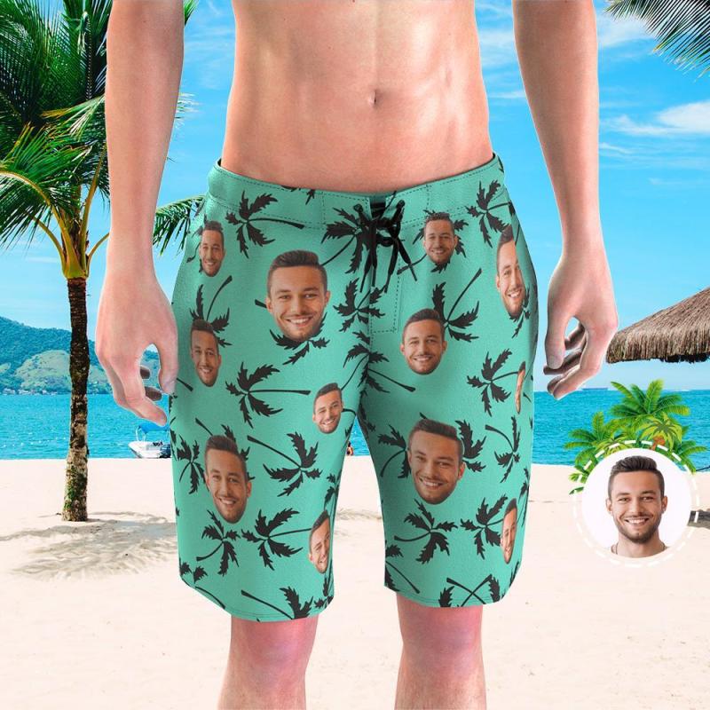 Men's Custom Face Beach Trunks Green Personalize Beach Shorts with Photos - Coconut Tree