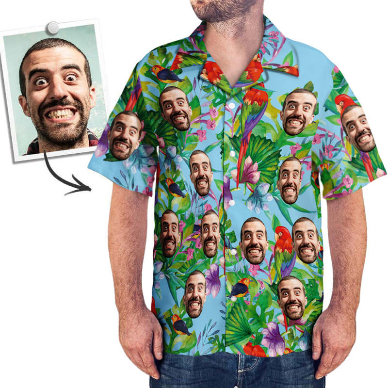 Men's Custom Face Shirt Hawaiian Shirt Short Sleeve Parrot