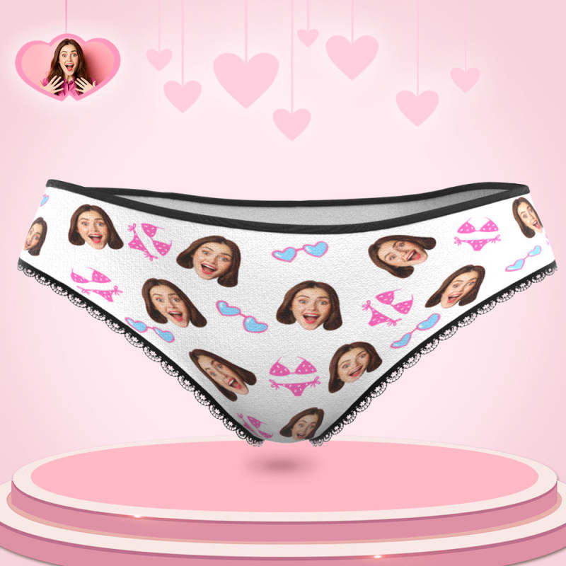 Personalized Bikini Face Panties Custom Womens Photo White Underwear Funny Gift For Her