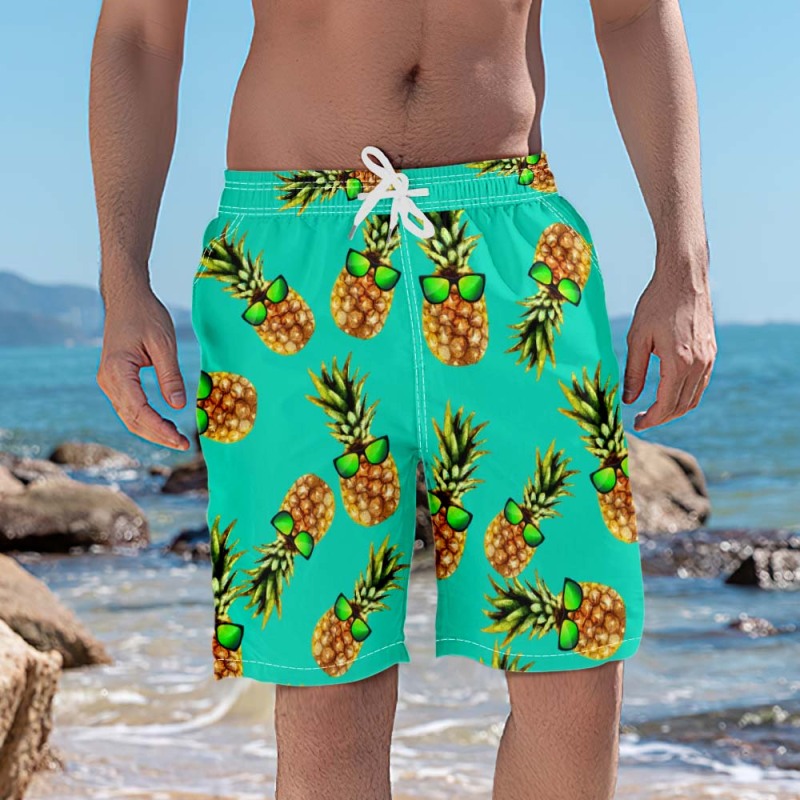 Pineapple With Sunglass Summer Men's Beach Shorts Swim Trunks