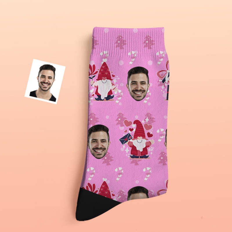 Pink Christmas Custom Thick Socks Photo 3D Digital Printed Socks Autumn Winter Warm Socks