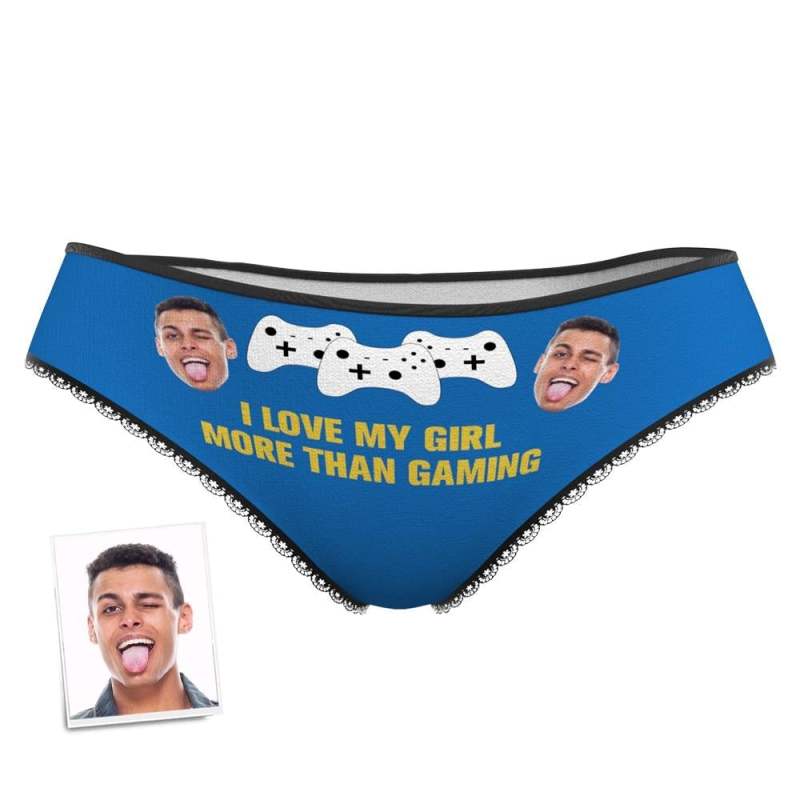WOMEN'S CUSTOM FACE THONG PANTY - I LOVE MY GIRL MORE THAN GAMING